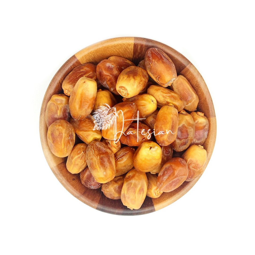 Zahedi dates, also known as Zahidi or Zahedi Golden Dates, are a medium to large-sized date variety grown primarily in Iran. They have an elongated shape with smooth, glossy, amber-yellow to golden-brown skin. Zahedi dates offer a mildly sweet and nutty flavor, making them versatile for both sweet and savory dishes. They are rich in dietary fiber, potassium, and magnesium, contributing to digestive health and overall well-being. These dates are commonly used in Iranian cuisine and are appreciated for their unique texture and moderate sweetness.